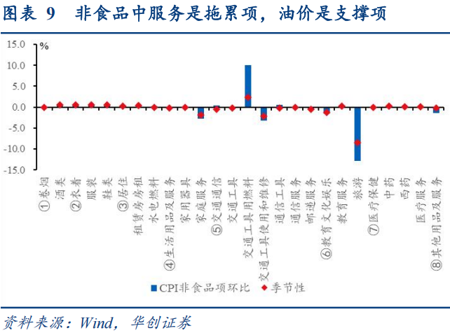 (二)非食品项:服务是拖累项,油价是支撑项