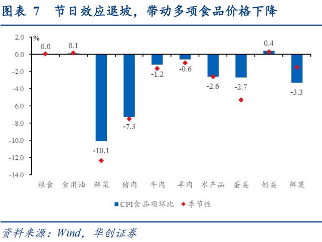 (一)食品项:节日效应退坡,带动多项食品价格下降
