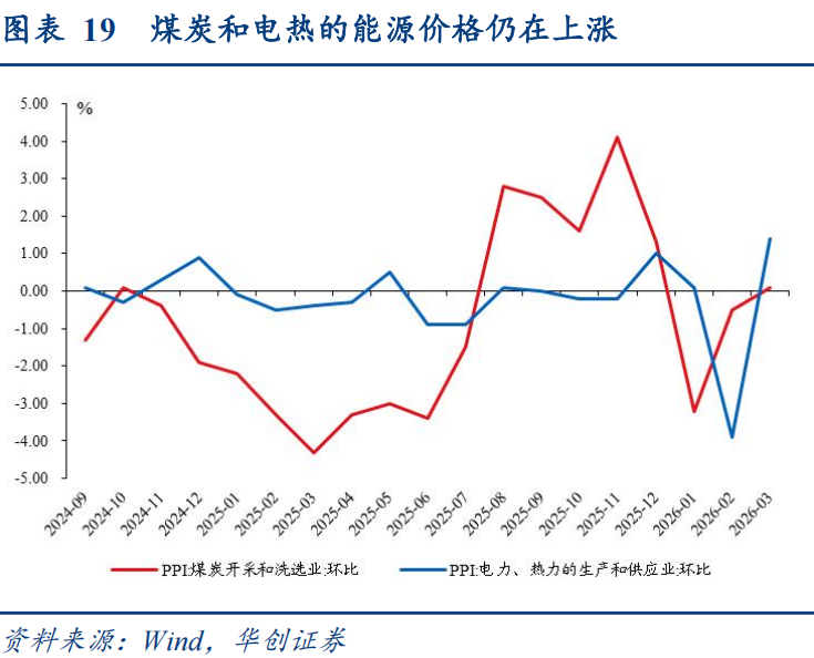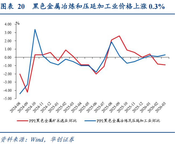 支撑项3:企业用能用钢等需求。节后工业企业、建筑项目逐步复工复产,用能用钢等需求有所回升,电力热力生产和供应业价格由上月下降3.9%转为上涨1.4%,煤炭开采和洗选业价格由下降0.5%转为上涨0.1%,黑色金属冶炼和压延加工业价格上涨0.3%,涨幅比2月扩大0.2个百分点。