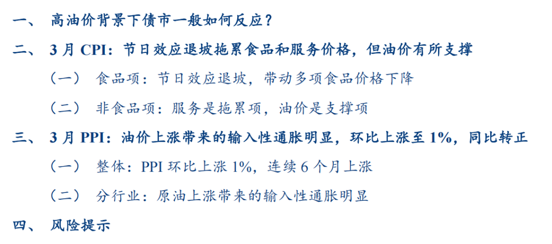 具体内容详见华创证券研究所4月10日发布的报告《高油价下债市如何反应?——3月通胀数据解读》